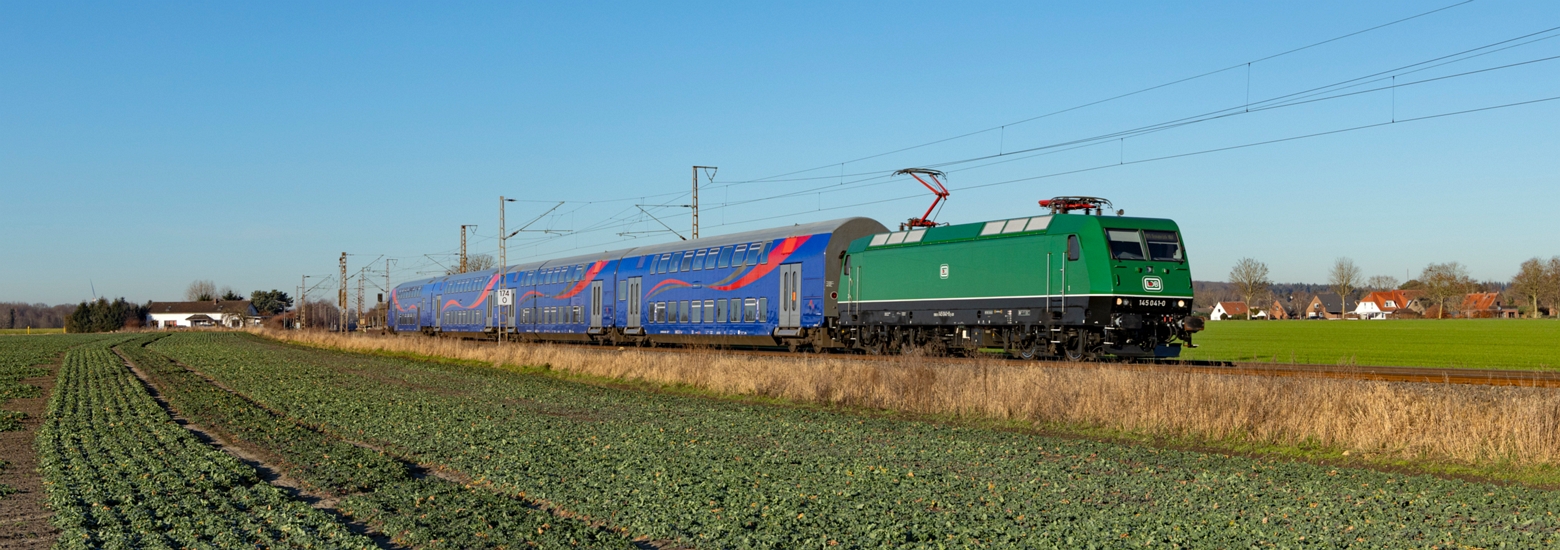 Seit Fahrplanwechsel 24/25 wurden auf dem RE9 alle Doppelstockzüge durch Triebwagen der Baureihe 442 ersetzt, die aus der ganzen Bundesrepublik herangezogen worden. Auf dem RE8 wurden nur die Verstärkerzüge zwischen Hannover und Bremen mit der Baureihe 442 gefahren. Der Rest vom RE8 und der RE1 wurden weiter durch die bisherigen doppelstöckigen Züge bespannt mit der Baureihe 146 gefahren. Zum Fahrplanwechsel 25/26 wurden die 442er vom RE9 abgezogen. Hier fährt DB Regio nun wieder mit doppelstöckigen Zügen von DB Gebrauchtzug gezogen von Loks der Baureihe 146 zwischen Osnabrück und Bremen. Bei den Wagen sind auch die 4 bunten Bahntouristik-Wagen dabei. Bei den durchgehenden Zügen von Osnabrück über Bremen nach Bremerhaven übernimmt die Wedler Franz Logistik GmbH (WFL) den Ersatzverkehr mit ihren eigenen Doppelstock-Wagen und Loks der Baureihe 145. Eine von 3 Garnituren läuft mit dem blauen Doppelstockzug der SRI Rail Invest GmbH und der grünen 145 041 von Lokdienste Braun. Durch Fristarbeiten an den Wagen und Loks kann es immer mal wieder zu einem Tausch der Loks und Wagenparks kommen. Ebenso sind auch kurzfristige Einsätze durch eine WFL-Lok der Baureihe 112/114 möglich. In Osnabrück ist ein kompletter Wagenpark der WFL inkl. Lok als Reserve hinterstellt. Zusätzlich gibt es eine weitere WFL-Lok als Reserve, ebenfalls eine 112/114.DB-Rollmaterial